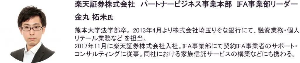 今回はSMBC日興証券で活躍された後にIFA事業会社を創業された株式会社Fan 代表取締役社長 尾口 紘一様と銀行から楽天証券に転籍されIFA事業者を支援されている 金丸様にお伺いした、IFAの報酬形態である「コミッションベース型」と「フィーベース型」の違いについてお伝えいたします。